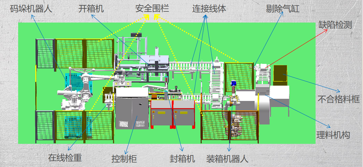 包裝機、自動打托線、AGV等設(shè)備,結(jié)合MES、AMS等系統(tǒng)...